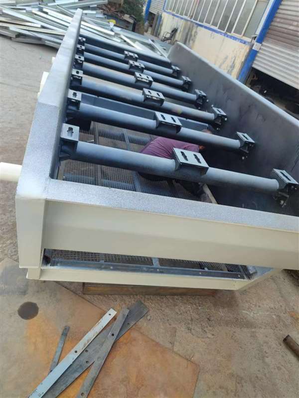 脫水篩是利用振動電機及激振的原理,當(dāng)兩臺電機作同步反向旋轉(zhuǎn)時,篩體的運動軌跡為一直線。物料脫水篩分,在篩面上被拋起,同時向前運動,從出料口排除,完成對原料的脫水篩分。用于選礦、尾礦、礦山、冶金、等行業(yè)的物料脫水篩分分級。