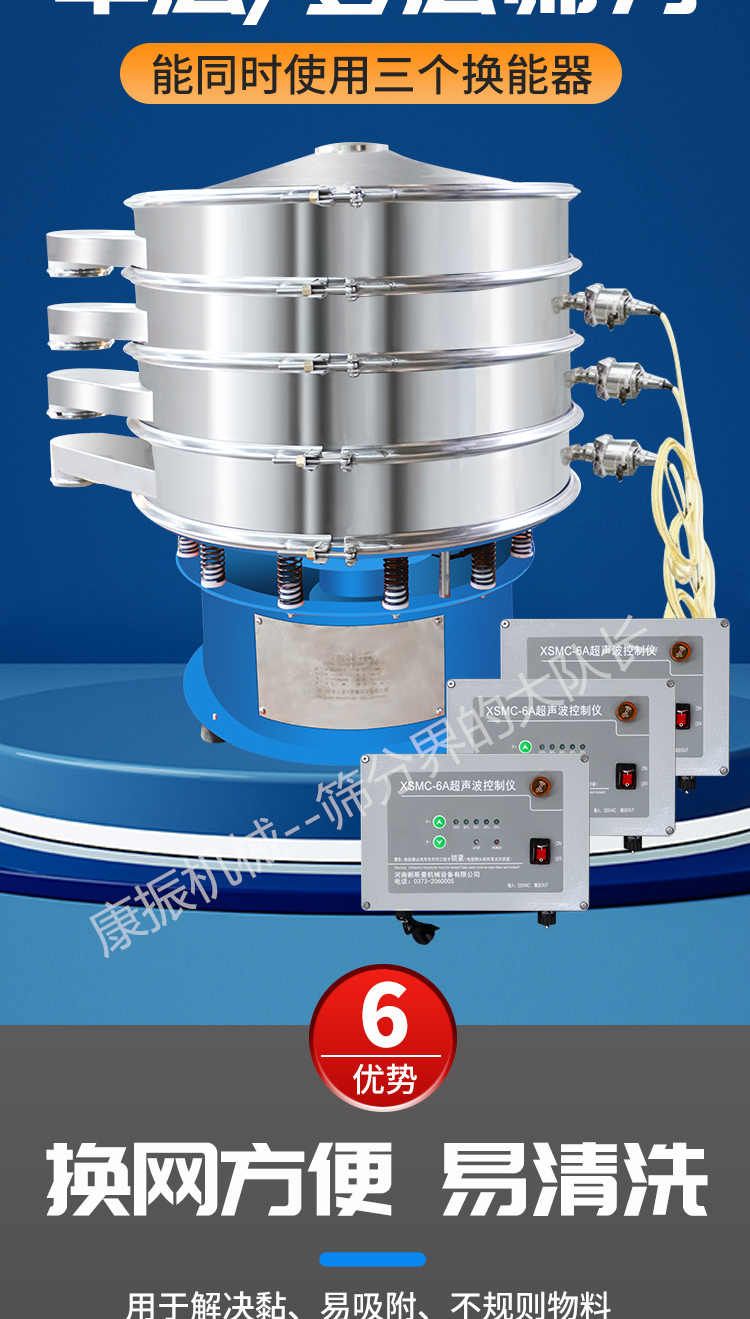 由于超聲波振動在新能源行業(yè)的**表現(xiàn),在線清網效果明顯,對于比較難篩分的物料有其顯著的效果。