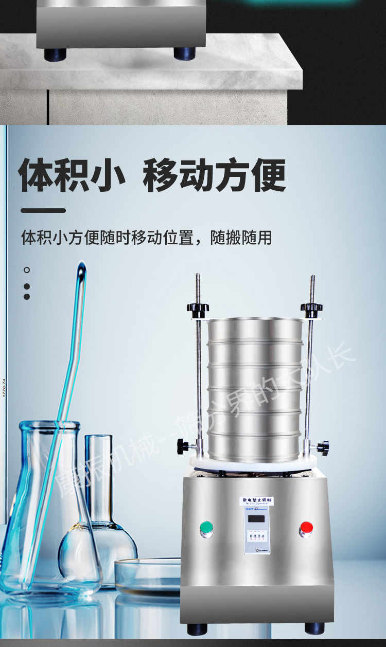 “機(jī)械篩分”將篩子按孔徑大小疊在一起,給料放在頂上一層篩子上,并加上蓋和底盤,一般疊5~6個(gè)篩子。然后放在機(jī)械振篩器上進(jìn)行機(jī)械振動(dòng)篩分。通常,振動(dòng)時(shí)間為20分鐘。檢測(cè)篩分質(zhì)量時(shí),再用振篩器振篩器振篩5分鐘,如每分鐘篩下量小于0.2%試驗(yàn)樣量即為合格,對(duì)于粗粒物料,過篩率小于1%即可。如篩分過程中損失量超過總篩分量的0.5%時(shí),試驗(yàn)必須重新取樣進(jìn)行。為避免損失和延長(zhǎng)篩分時(shí)間,有時(shí)在開始篩分時(shí)先用細(xì)的篩子將粉塵篩除