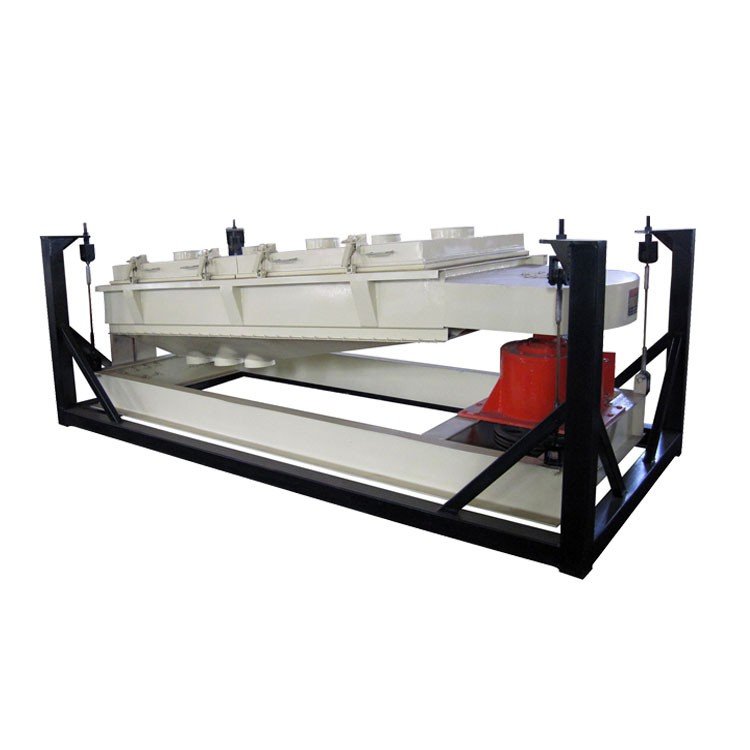 平面篩工作原理傾角為4度的篩體由傳動(dòng)箱馭動(dòng),其運(yùn)動(dòng)軌跡在進(jìn)料端為水平圓運(yùn)動(dòng)。在長(zhǎng)度方向上逐漸變成橢圓運(yùn)動(dòng)。zui后在出料端變成近似往復(fù)直線運(yùn)動(dòng)。