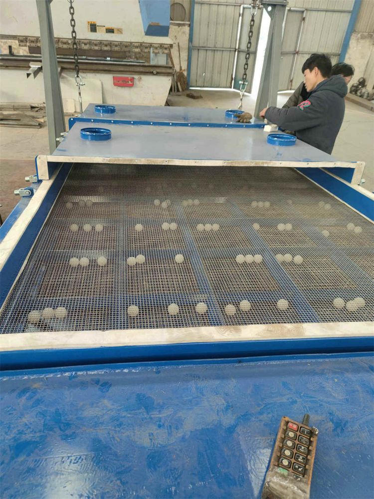平面回轉(zhuǎn)篩在篩網(wǎng)下方格中的彈跳球通過直接裝機(jī)篩網(wǎng)來去除篩網(wǎng)上的顆粒,使篩網(wǎng)表面保持清潔,小球撞擊篩網(wǎng)產(chǎn)生的振動(dòng)有助于物料的分離和粘在一起的顆粒分離。