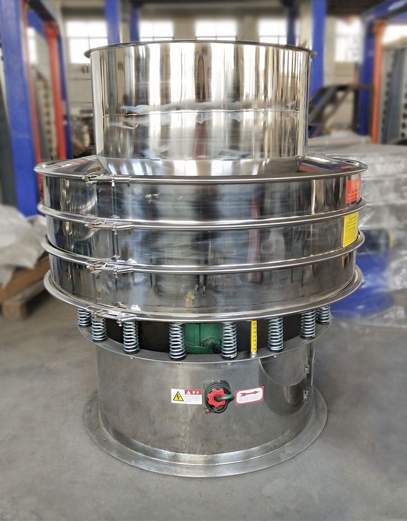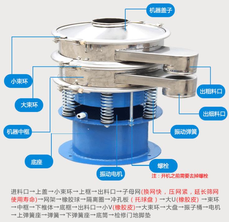 旋振篩是一種高精度細粉篩分機械,其噪音低、效率高,快速換網(wǎng)只需3-5分鐘,全封閉結(jié)構(gòu),適用于粒、粉、粘液等物料的篩分過濾。旋振篩是由直立式振動電機作激振源,電機上、下兩端安裝有偏心重錘,將電機的旋轉(zhuǎn)運動轉(zhuǎn)變?yōu)樗?、垂直、傾斜的三次元運動,再把這個運動傳遞給篩面。調(diào)節(jié)電機上、下兩端的相位角,可以改變物料在篩面上的運動軌跡。
