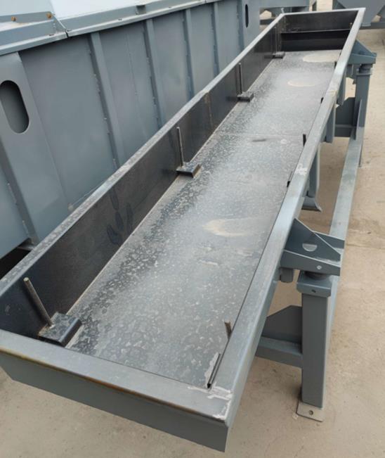 振動輸送機(jī)一般由振源—振動電機(jī)或激振器、承載體、減振支承、承載基礎(chǔ)及相關(guān)配套附件等組成。根據(jù)現(xiàn)場使用環(huán)境及輸送物料特性要求,輸送機(jī)承載體可采用不同材料分別加工成U形槽和管狀等結(jié)構(gòu)形式,并可按有無密封要求制作成敞開型或封閉型,以滿足不同工藝流程;由于設(shè)備承載體是金屬制件及潤滑點(diǎn)遠(yuǎn)離物料,因此,該機(jī)不僅可以輸送各種常溫、普通物料,而且可以輸送很多高溫、有毒等非常規(guī)物料;如對承載體施行特殊加工,則在輸送過程中可實(shí)現(xiàn)物料的篩選、干燥、加溫、冷卻等工藝要求。