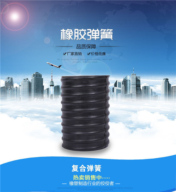復(fù)合彈簧:是由金屬螺旋彈簧和橡膠復(fù)合在一起的園筒狀彈性體。該產(chǎn)品優(yōu)于金屬彈簧,具有抗腐蝕性好、壽命長等優(yōu)點(diǎn),與其它彈簧相比,減振能力強(qiáng),緩沖效果好。