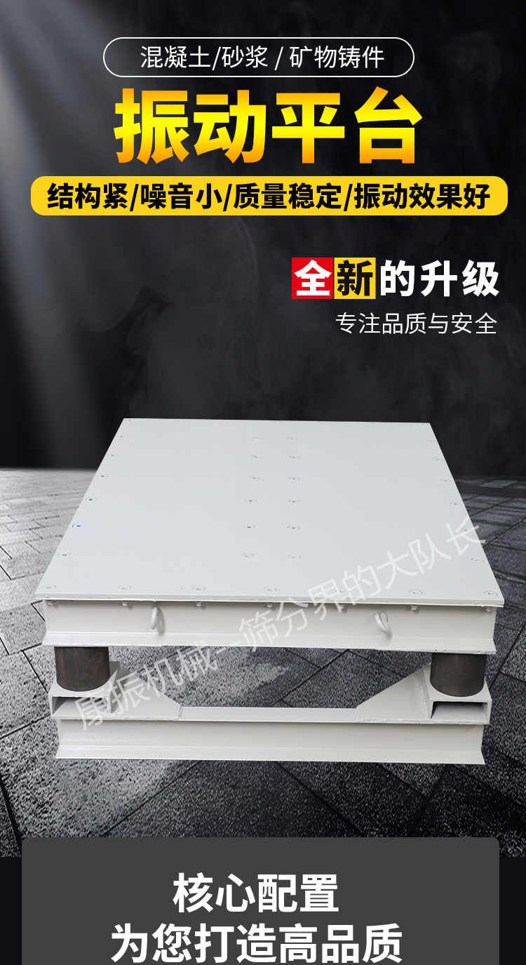 主要由臺底架、振動電機和彈簧等部件組成,臺面與底架均用鋼板和型鋼焊接而成,振動臺是用振動電機加一對相同的偏心輪組成。