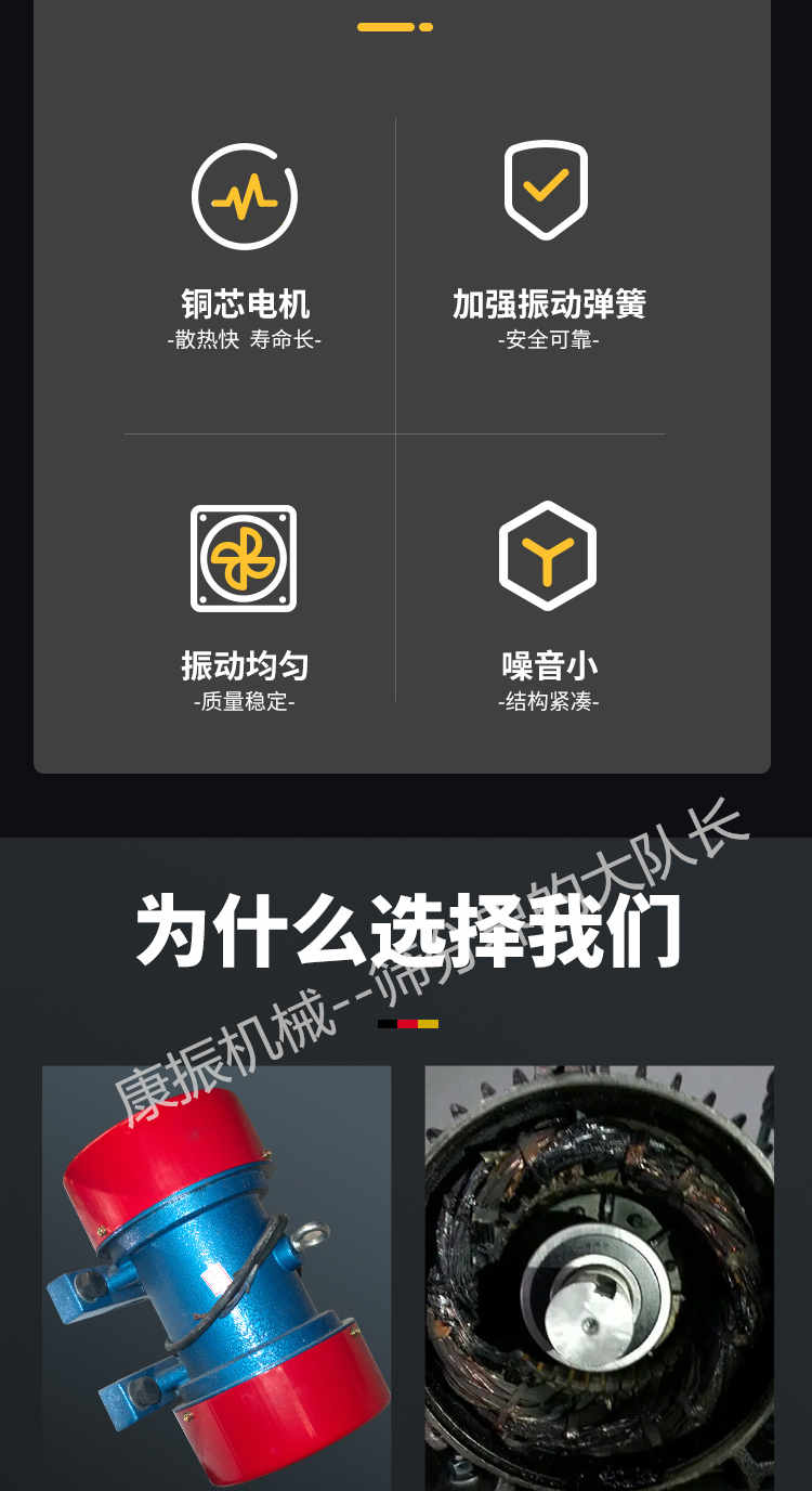 2、振蕩電機為激振源,噪聲低、耗電小、保護(hù)簡略。